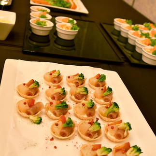 今回は出席者が気兼ねなく各テーブルに移動できる立食のビュッフェスタイルでした。